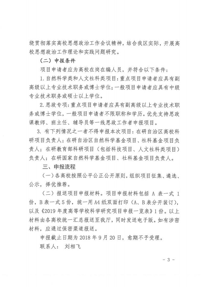 (四)内蒙古自治区高等学校科学技术研究项目纸质申报材料截止时间:2018年9月12日上午11:30前,统一报到科技处(410室),电子版以学院为单位统一发到科技处邮箱。